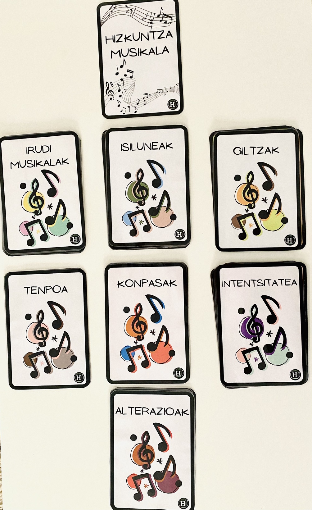 Hizkuntza musikalaren txartelak folio erdi tamainakoak.
